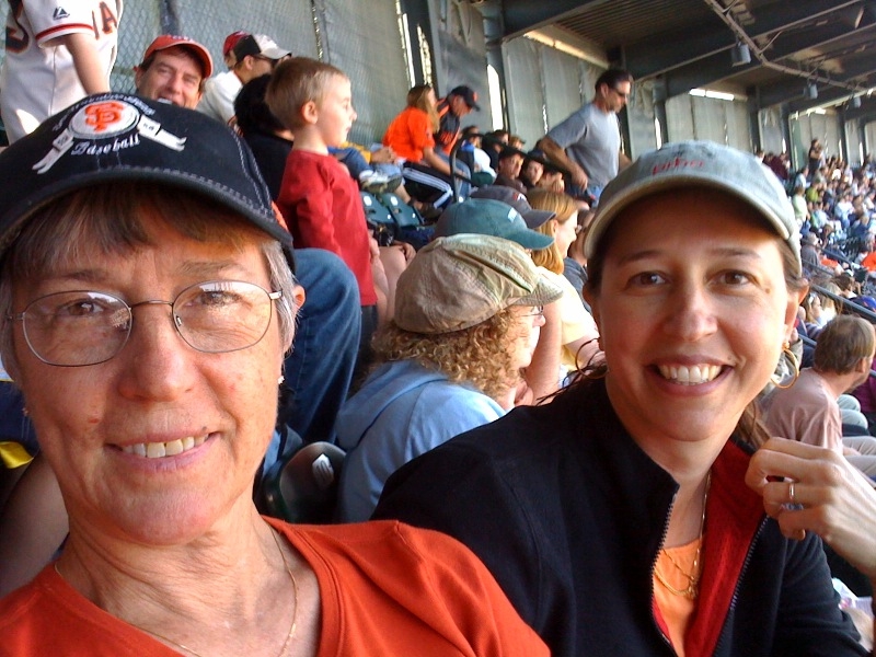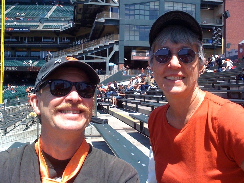 We were hanging out in the bleachers in the first photo and moved to our actual seats for the game itself. And it was a great game! Zito pitched, and after he walked the first two batters it seemed like the whole thing was going to fall apart, but then he righted himself and pitched beautifully. The bad guys got a home run that we’re all still not sure about. But, in the end, the Giants prevailed.