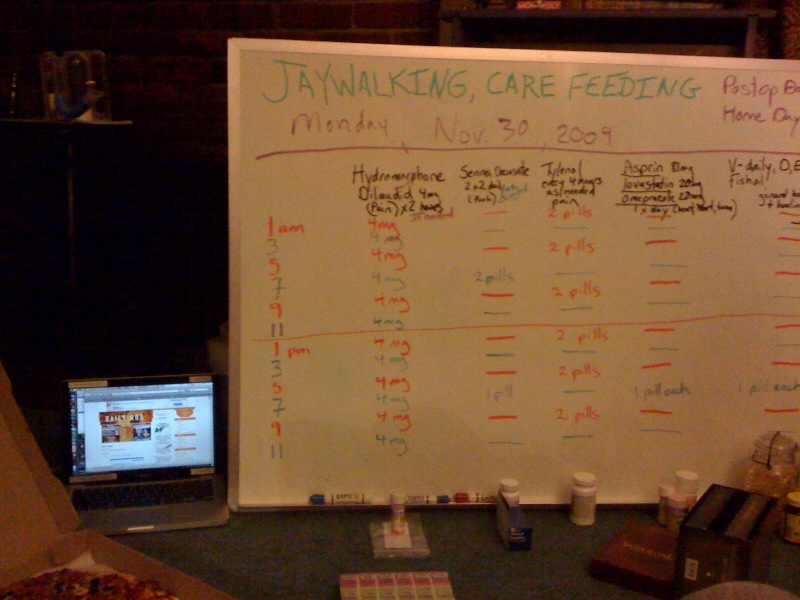 shelly_rae’s gift, for the managing of the meds (plus evidence that the jaylake is back online, and a corner of the pizza):