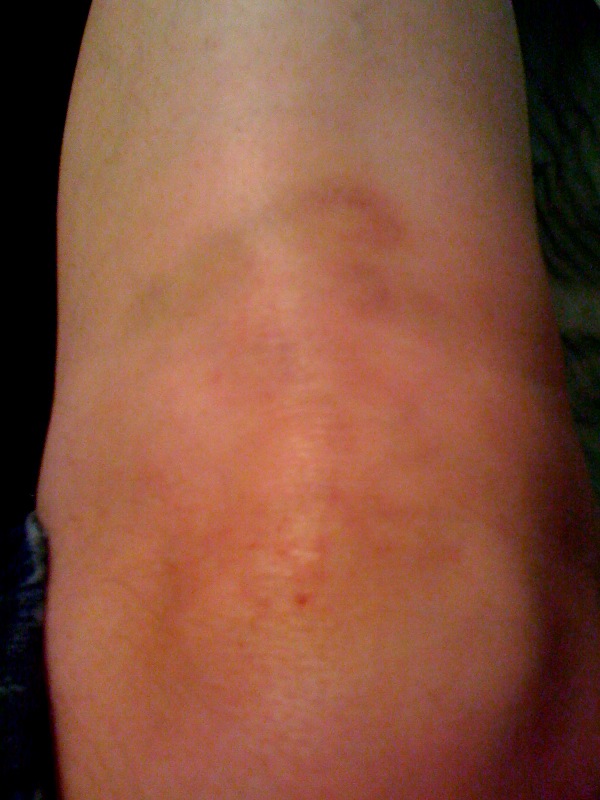 It’s getting uglier, and healing perfectly. I forget it’s there unless I lean on it, which is all to the good.