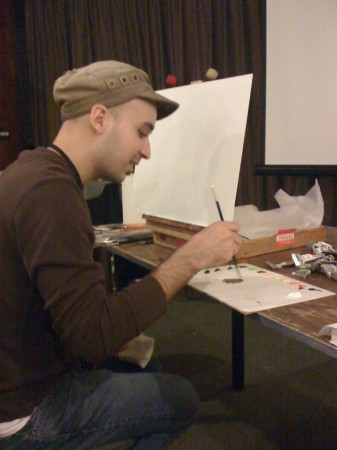 Later, Dan painted a portrait of Patty Briggs while they chatted. That was awesome.