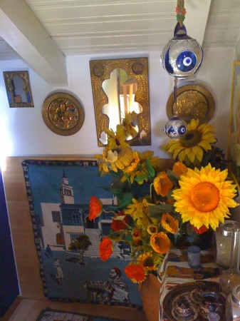 The apartment itself was….interestingly decorated. My photos don’t do it justice. The owner has a strong affinity for color, I think it’s safe to say. And mirrors, and plastic flowers, and objects d’art of every kind, everywhere…