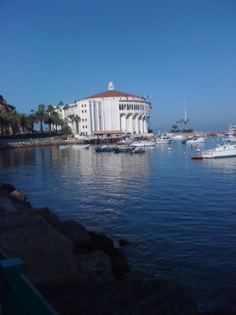 It’s just gorgeous there–which I knew from the photos my mom showed me from when she and Stepdad went there a few years ago; but, yes, just lovely. And the weather was spectacular. It was foggy and grim as we waited for the ferry; started to clear up on the ride out (and we saw dolphins! Lots of them! Springing gleefully out of the water!), and cleared up entirely as we arrived at Avalon.
