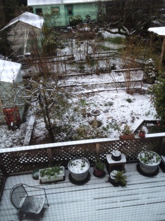 (that’s the view from my bedroom window, looking down to the deck and back yard below…you can just **barely** see my new stone path under the snow…)