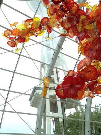 Mark and I are in Seattle, with my parents–today we did the Space Needle lunch again (like we did with my other set of parents), had a great time again–and then this time the Chihuly glass exhibit was open, so we got to do that too. Gorgeous!