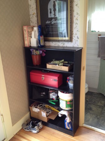 I went hunting for a sturdy bookcase today, to use as a junk-and-garden-stuff collecting place by the back door. After being only temporarily distracted by wonderful cheap silver at Goodwill, and a new Salt and Straw foodcart on Division (evil!), I found the perfect thing.
